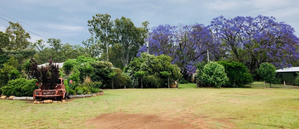 Grand old girls! Set on the banks of the Dogwood Creek the Sunnyview garden has been shaped and nurtured to encapsulate the exquisite 100 year old jacarandas and original property cottage (now Kylie’s art studio and gallery). Bring along your picnic and rest up under the jacas for a cuppa, chat and art gallery visit! Kylie will have the billy boiling all day!