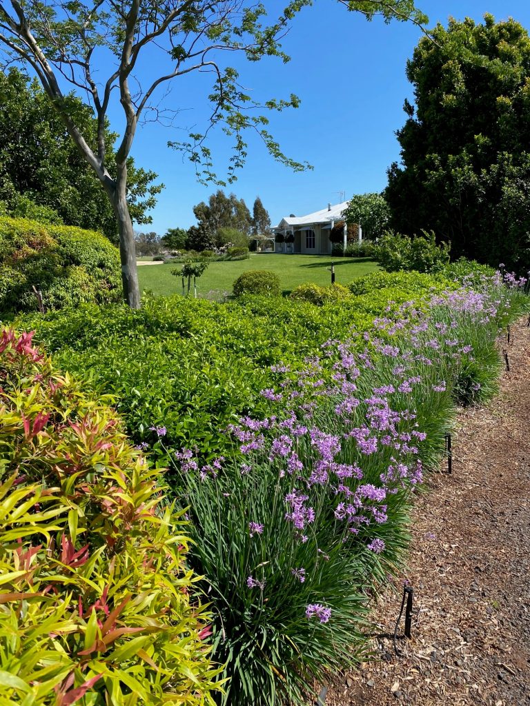 Avington is a garden of rooms and intrigue, leading visitors on a journey of discovery; from its formal deciduous trees and hedged plantings spattered with delicate colour, through to a young developing fruit orchard and wicking bed vegetable garden. There is much to glean from Judi and Phil’s gardening journey in a country setting.